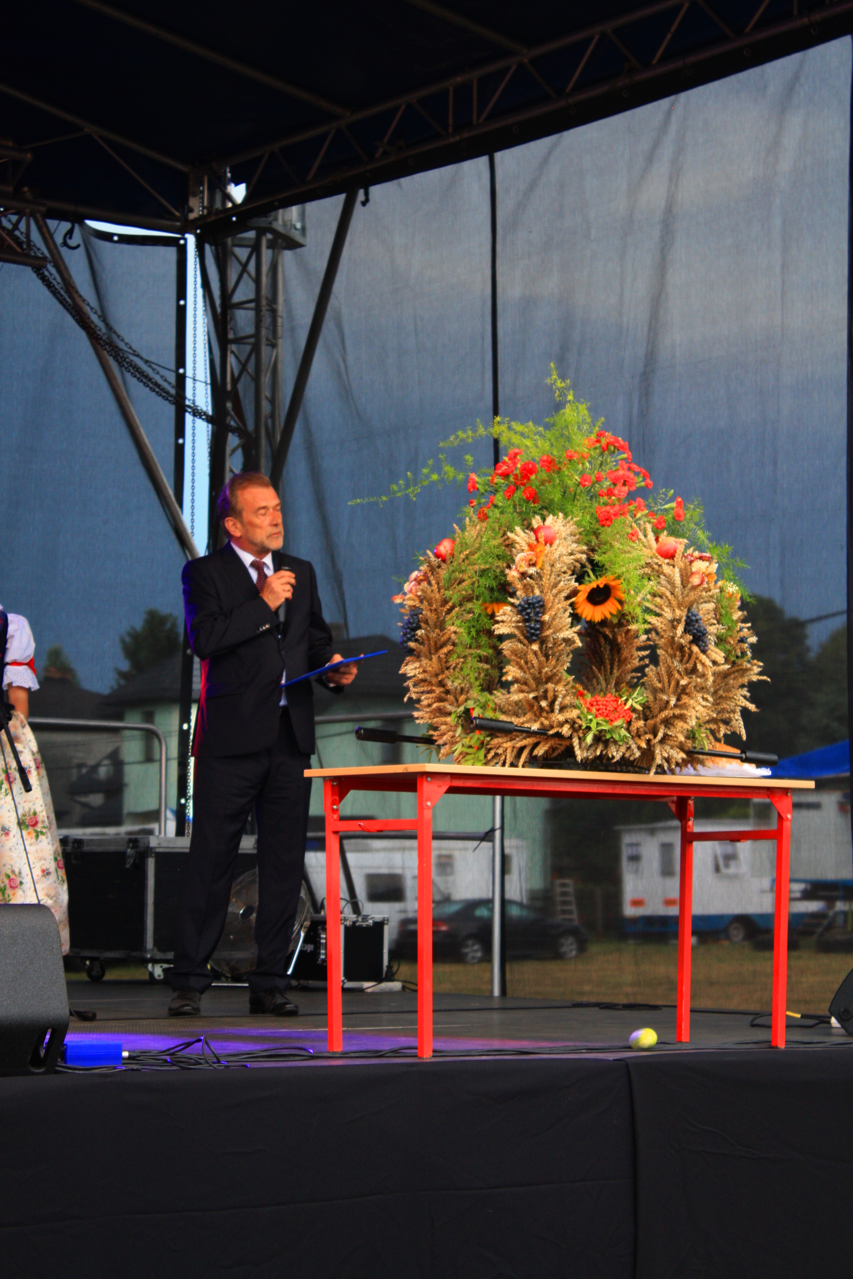 Festyn rozpoczął się od wejścia zespołu Kopciowiczanki. Panie wniosły na scenę piękny wieniec, stanowiący symbol dożynek. Na scenicznych deskach pojawił się również wójt gminy – Stanisław Jagoda, któremu na ręce przekazano dorodny bochen chleba. Po krótkim przemówieniu rozpoczęła się właściwa zabawa.